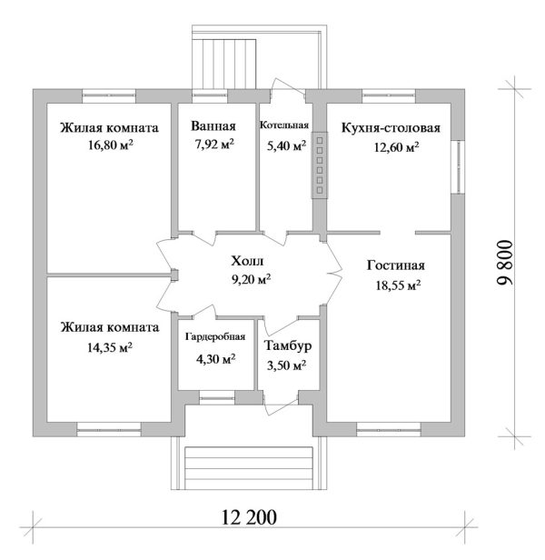 Общая площадь: 92,62 м2, одноэтажный, 2 спальни, материал строительства: блоки.