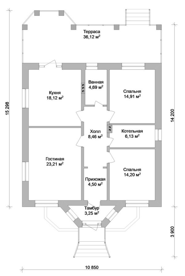 Общая площадь: 131,30 м2, одноэтажный, 2 спальни, материал строительства: кирпич, дополнения: терраса.