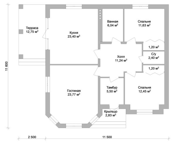 Общая площадь: 114,42 м2, одноэтажный, 2 спальни, материал строительства: кирпич, дополнения: терраса.
