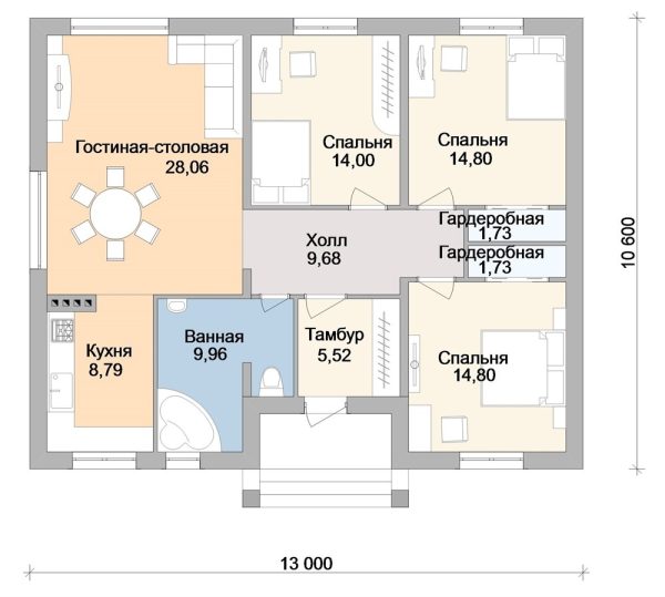 Общая площадь: 109,07 м2, одноэтажный, 3 спальни, материал строительства: кирпич.