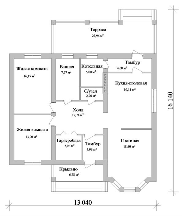 Общая площадь: 143,03 м2, одноэтажный, 2 спальни, материал строительства: блоки, дополнения: терраса.