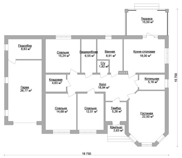 Общая площадь: 187,43 м2, одноэтажный, 3 спальни, материал строительства: кирпич, дополнения: гараж, терраса.