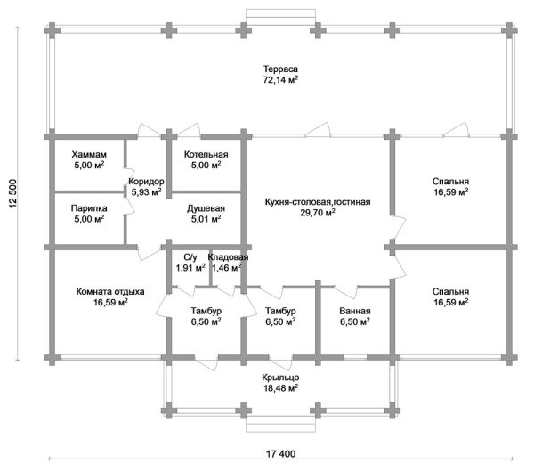 Общая площадь: 218,91 м2, одноэтажный, 2 спальни, материал строительства: дерево, дополнения: терраса.