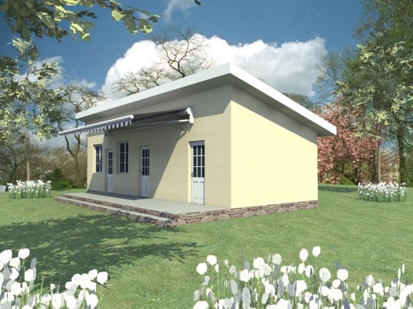 Общая площадь: 35,66 м2, одноэтажный, материал строительства: блоки, дополнения: терраса.