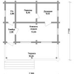 Общая площадь: 48,97 м2, одноэтажный, материал строительства: дерево, дополнения: терраса.