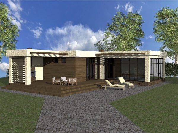 Общая площадь: 121,41 м2, одноэтажный, материал строительства: блоки, дополнения: терраса.