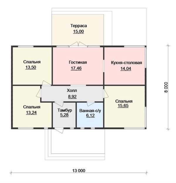 Общая площадь: 109,21 м2, одноэтажный, 3 спальни, материал строительства: каркасный, дополнения: терраса.
