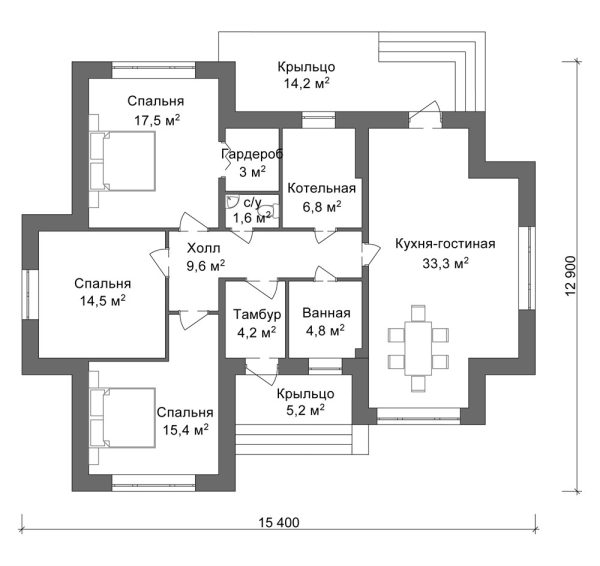 Общая площадь: 130,10 м2, одноэтажный, 3 спальни, материал строительства: блоки, дополнения: терраса.
