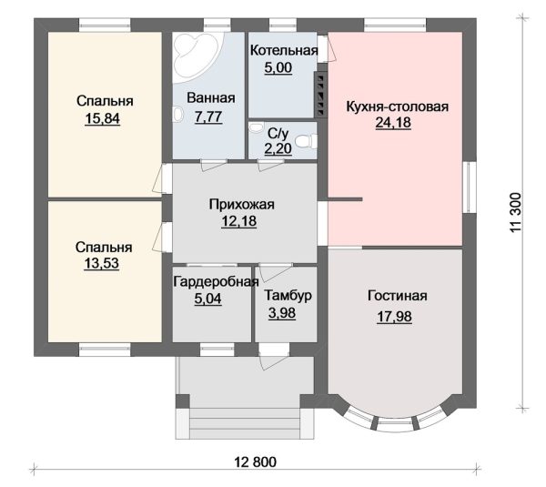 Общая площадь: 107,70 м2, одноэтажный, 2 спальни, материал строительства: блоки.