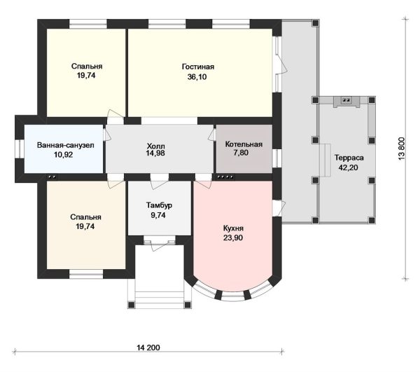 Общая площадь: 185,12 м2, одноэтажный, 2 спальни, материал строительства: кирпич, дополнения: терраса.