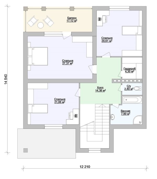 Общая площадь: 254,42 м2, с мансардой, 3 спальни, материал строительства: кирпич, дополнения: терраса.