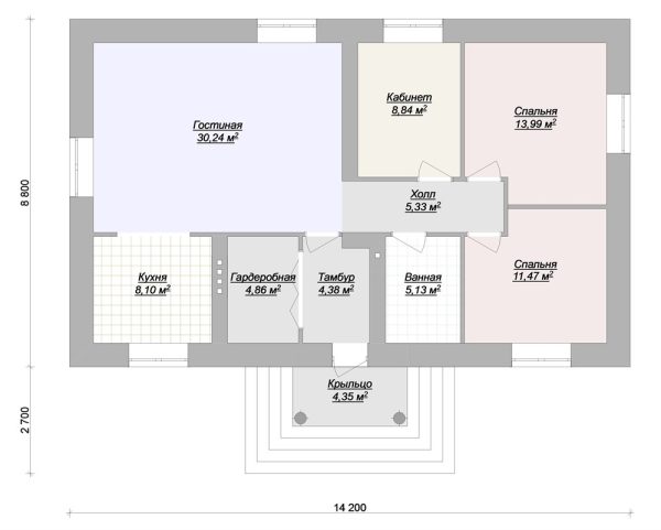 Общая площадь: 96,69 м2, одноэтажный, 2 спальни, материал строительства: кирпич.