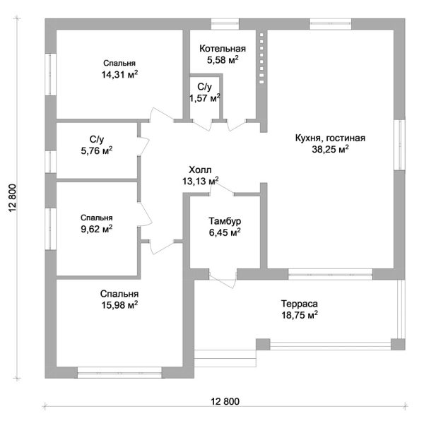 Общая площадь: 129,39 м2, одноэтажный, 3 спальни, материал строительства: кирпич, дополнения: терраса.